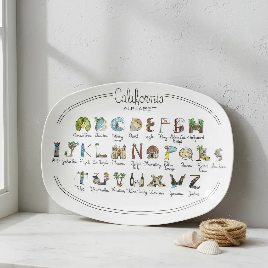 From Avocado Toast to Ziplines, your California Alphabet Platter is filled with all things A-Z that make your state one-of-a-kind. Our unique platter is handmade from revolutionary new material, (similar to a heavy plastic), that is: