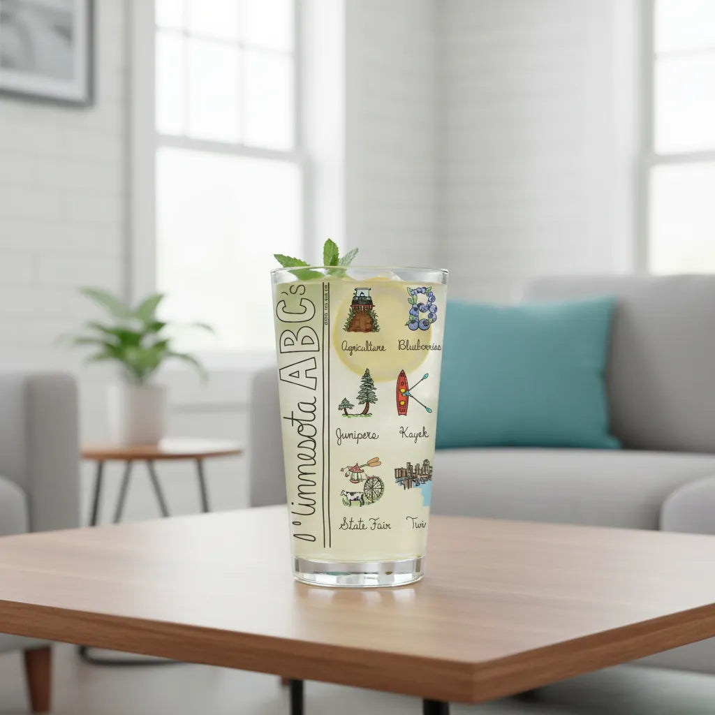 Bring the comfort of home with you as you sip from this 16 oz. drinking glass.
