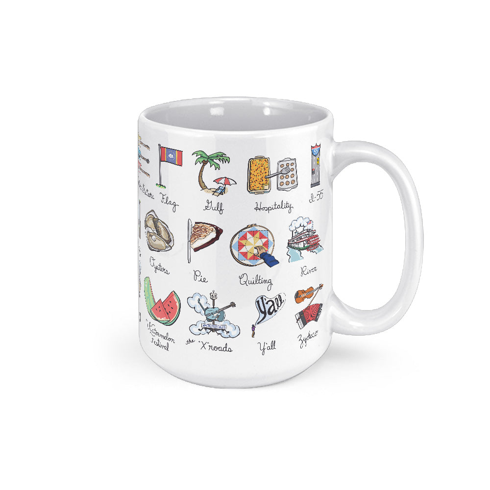 From Azaleas to the Zydeco, your Mississippi Alphabet Mug is filled with all things A-Z that make your state one-of-a-kind. Bring the comfort of home with you as you sip from this large 15 oz. mug.