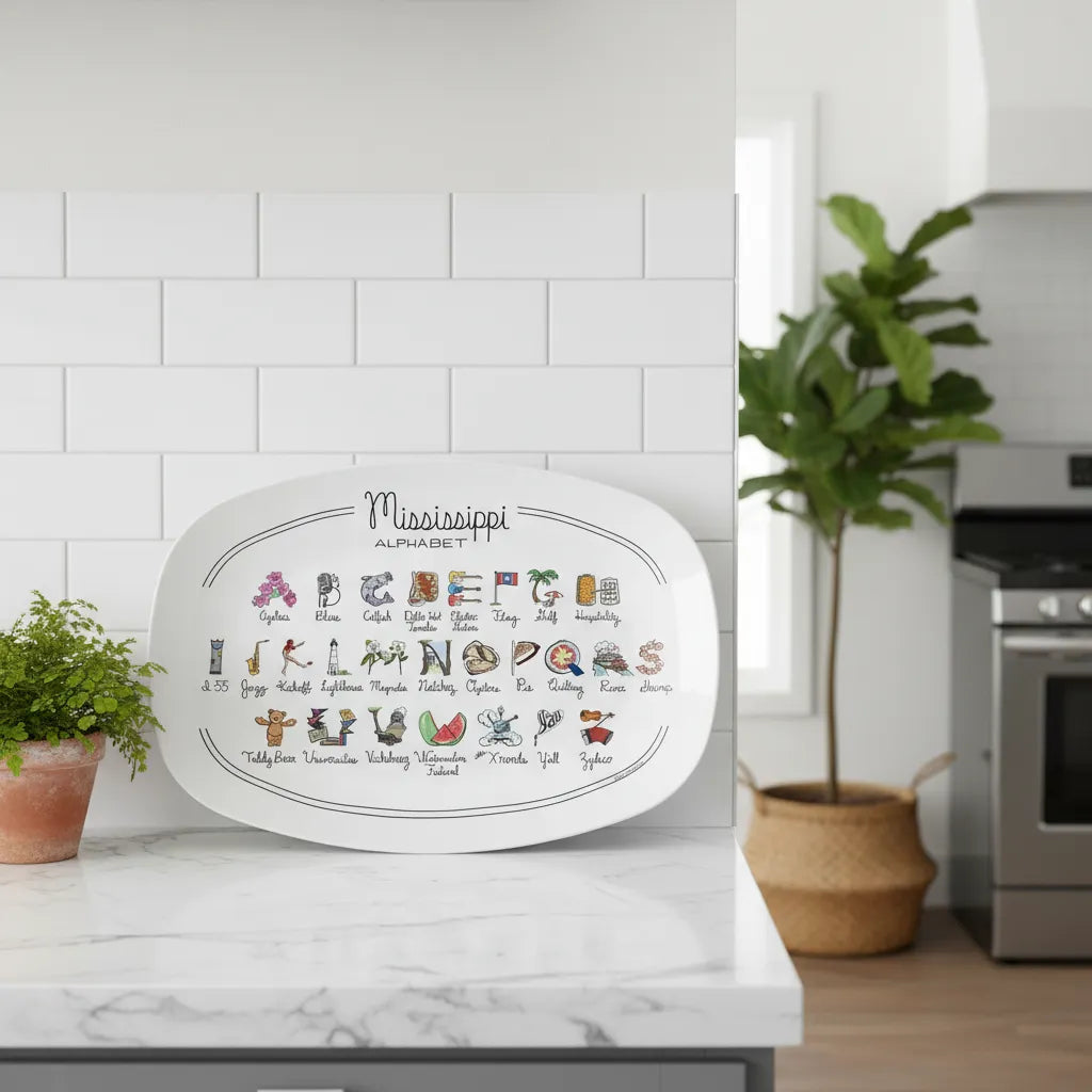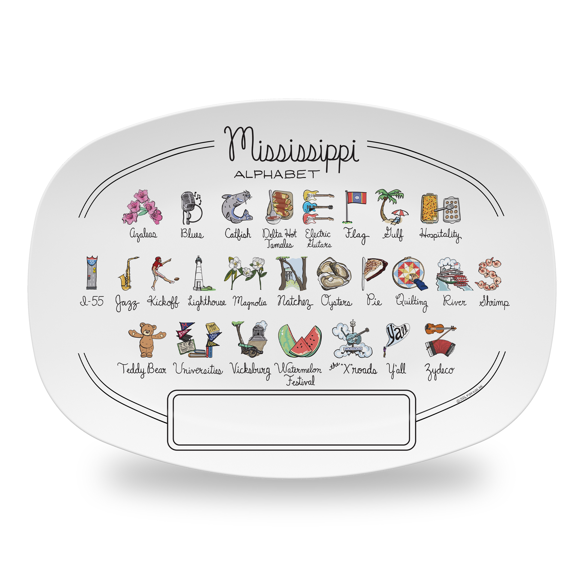 From Azaleas to the Zydeco, your Mississippi Alphabet Platter is filled with all things A-Z that make your state one-of-a-kind. Our unique platter is handmade from revolutionary new material, (similar to a heavy plastic), that is: