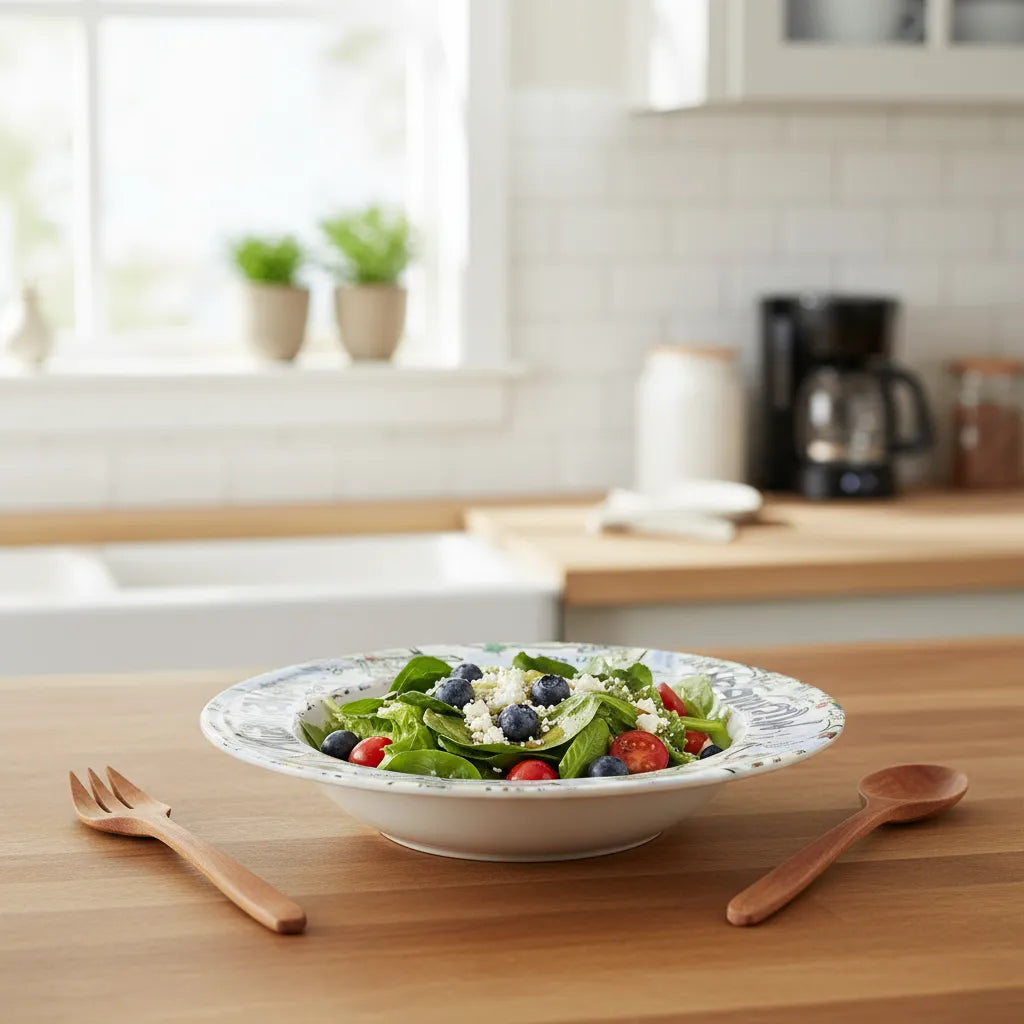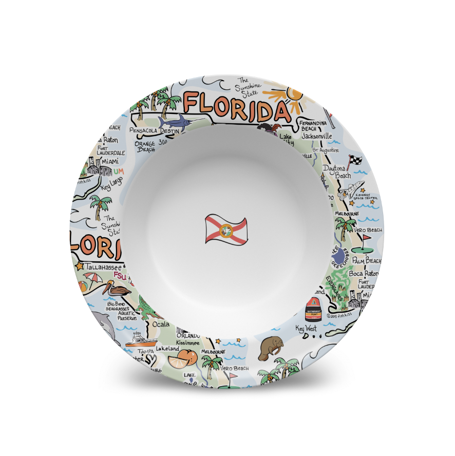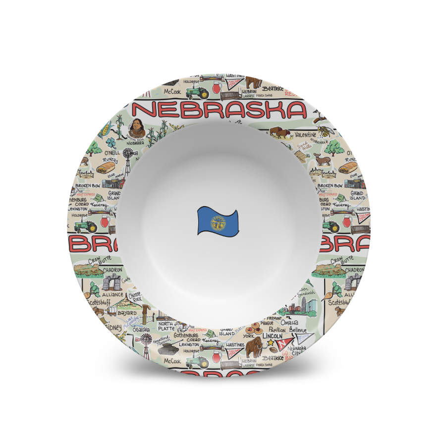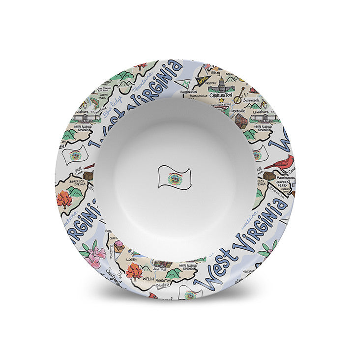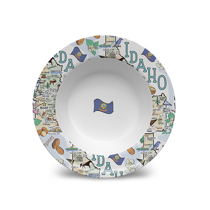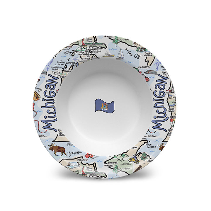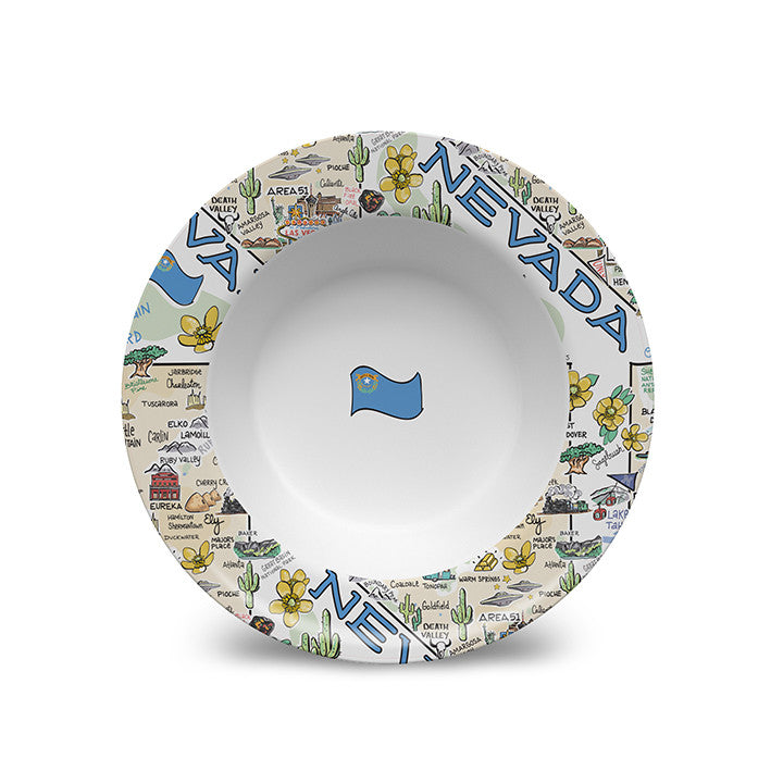 Your favorite state artwork on a 8.5" x 1.3" deep bowl manufactured from revolutionary material, (similar to plastic), that is: