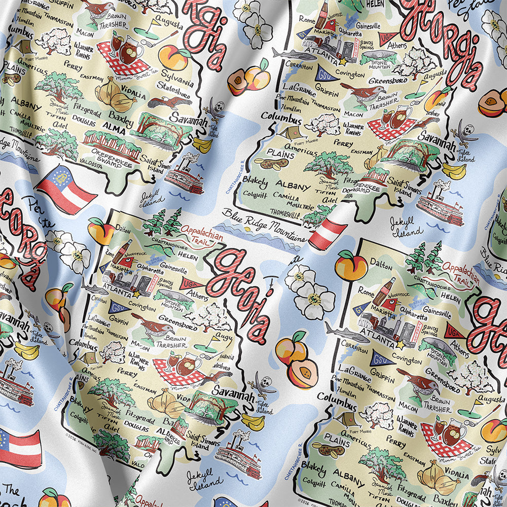 - Unique Hand-Drawn Map Design: A one-of-a-kind illustration by Fish Kiss featuring landmarks, beloved animals, and yummy foods, all artfully integrated into a whimsical map.