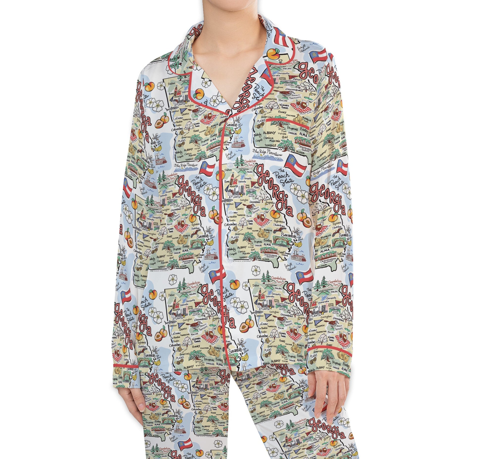 To keep your State Map Pajamas looking and feeling their best, we recommend gentle machine washing on a cold cycle with like colors. Tumble dry on low heat or hang to dry. Avoid bleach and ironing on high heat to preserve the delicate satin and vibrant print.