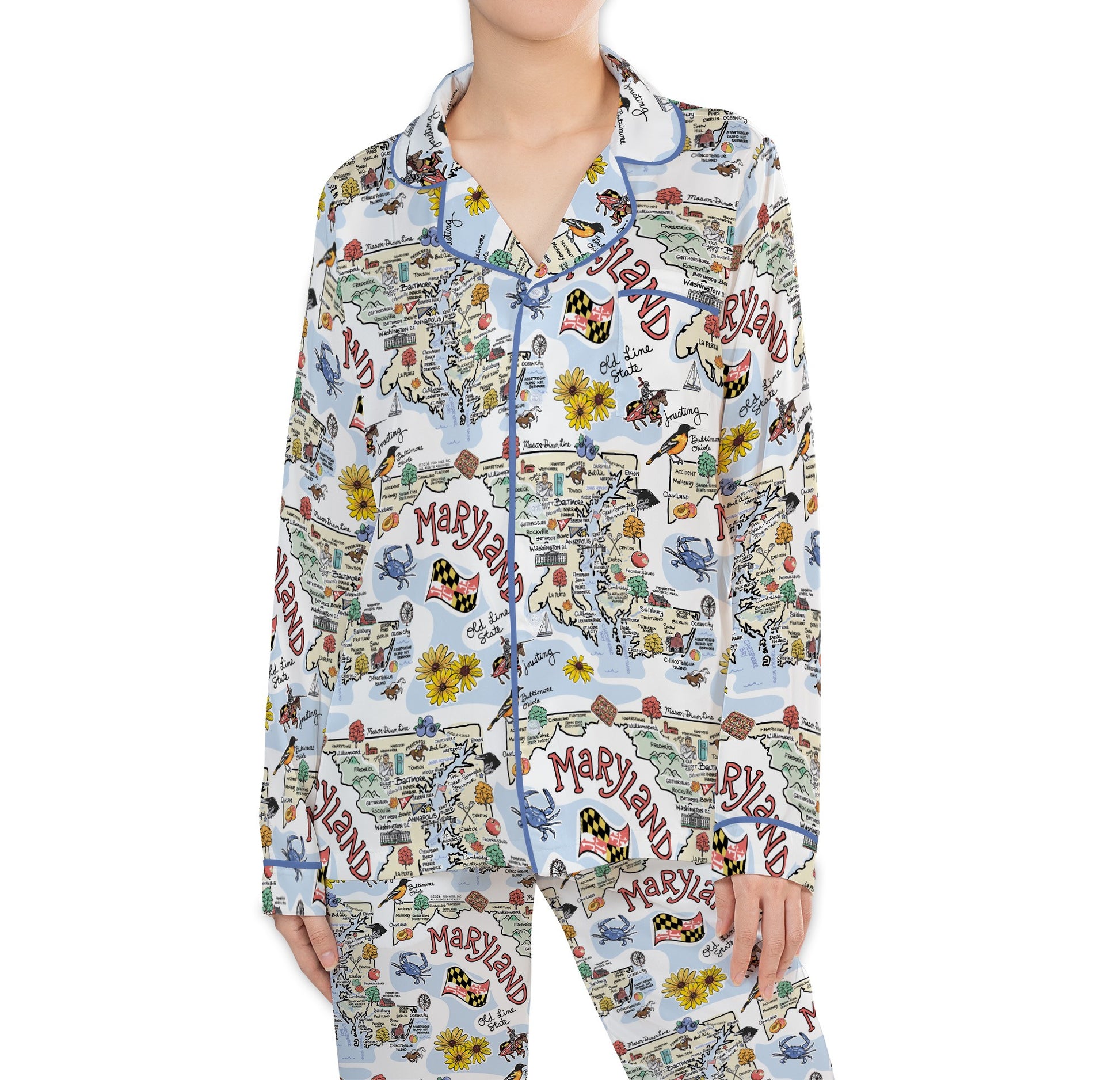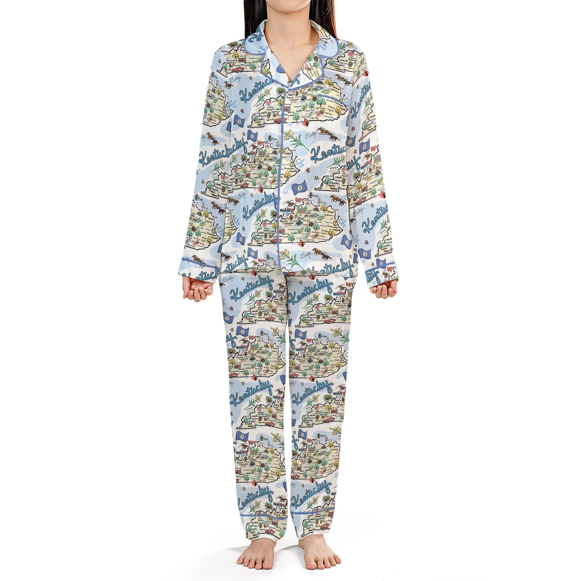 Designed for ultimate comfort and style, these pajamas are more than just sleepwear; they're a wearable celebration of your state. The smooth, luxurious feel of the satin fabric provides an unparalleled sleeping experience that feels both indulgent and cozy.