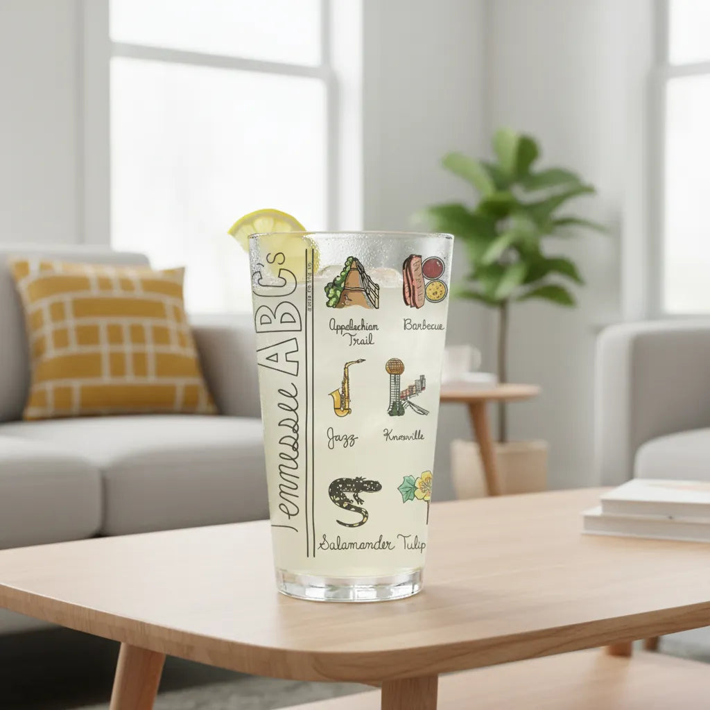 Bring the comfort of home with you as you sip from this 16 oz. drinking glass.